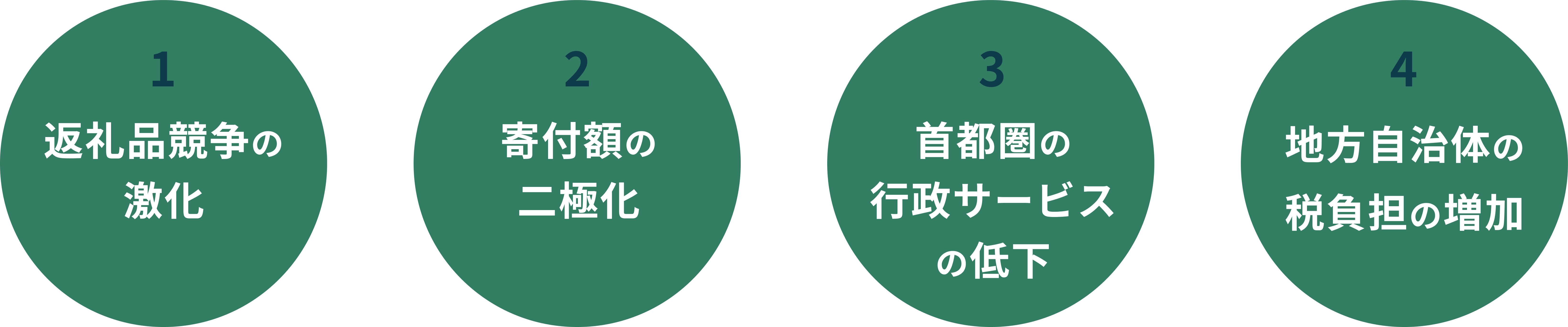 - 地域を応援するという本来の趣旨が希薄となっているという部分が問題になってます。ふるさとや地域応援のためのふるさと納税ではなく、返礼品を目的とした寄附が増えたため、地域間による返礼品競争が今後も発生することが予想されます。